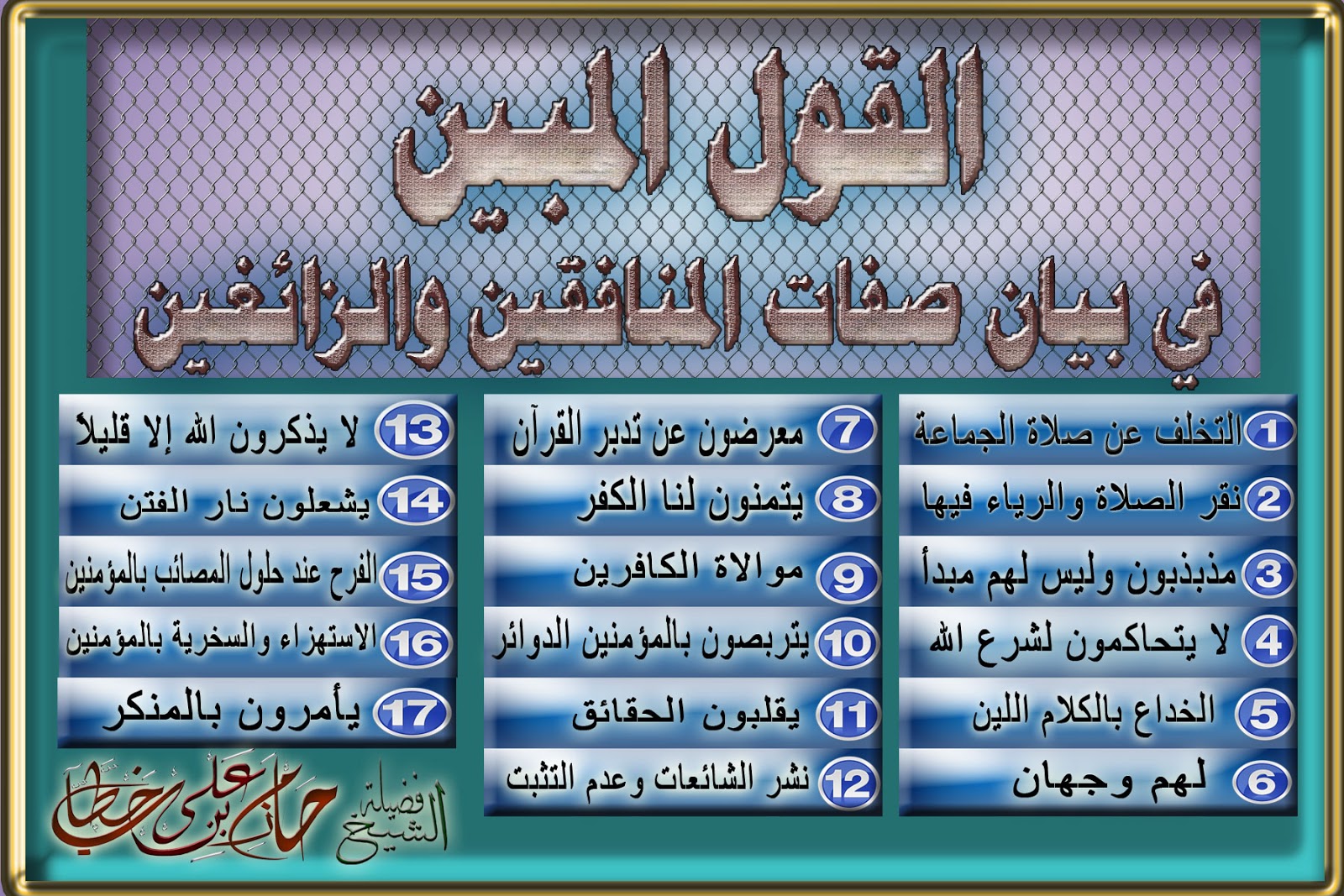القول المبين في بيان صفات المنافقين والزائغين موقع الشيخ حازم خطاب