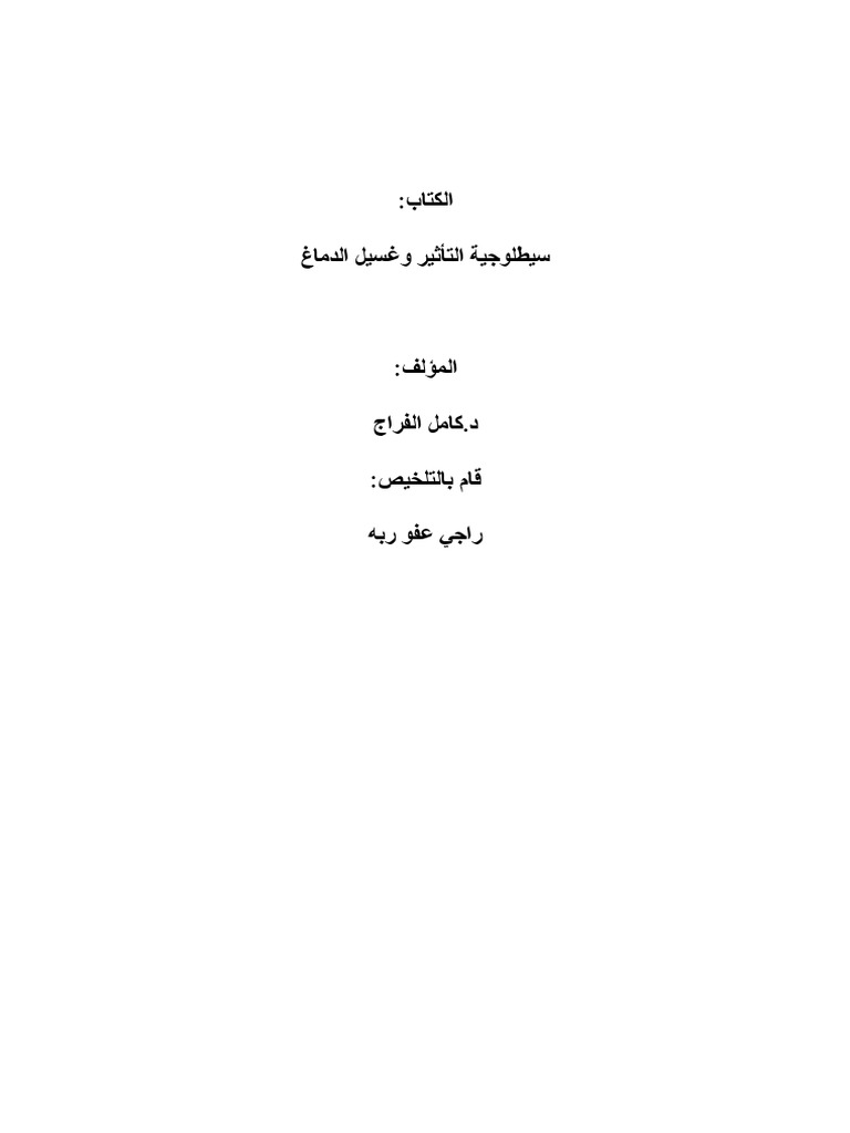 غسيل الدماغ 1 مفهوم غسيل الدماغ وتعريفه. غسيل الدماغ سلاح من أسلحة الحرب النفسي ة يرمي إلى السيطرة على العقل البشري وتوجيهه بغايات مرسومة بعد أ. حكم عن العقل إن الارادة هي ذلك.