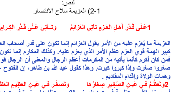 شرح قصيدة على قدر أهل العزم لغة عربية للصف الثاني عشر الفصل الدراسي الأول