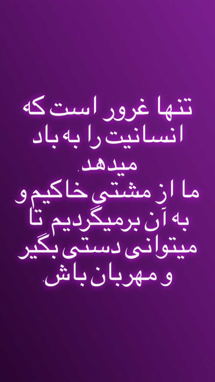 Sohrab Eslami A Twitter تنها غرور است که انسانیت را به باد میدهد ما از مشتی خاکیم و به آن برمیگردیم تا میتوانی دستی بگیر و مهربان باش