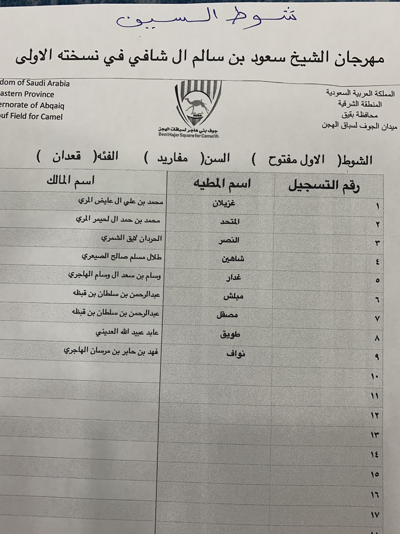 جابرناصرالهاجري On Twitter كشوفات الاشواط الرئيسيه لسن المفاريد في مهرجان الشيخ سعود بن سالم ال شافي في نسخته الأولى ونتمنى التوفيق للجميع