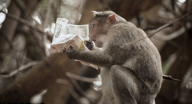 الهند قرد يقرأ جريدة ويتابع أهم الأخبار ابداع الخالق