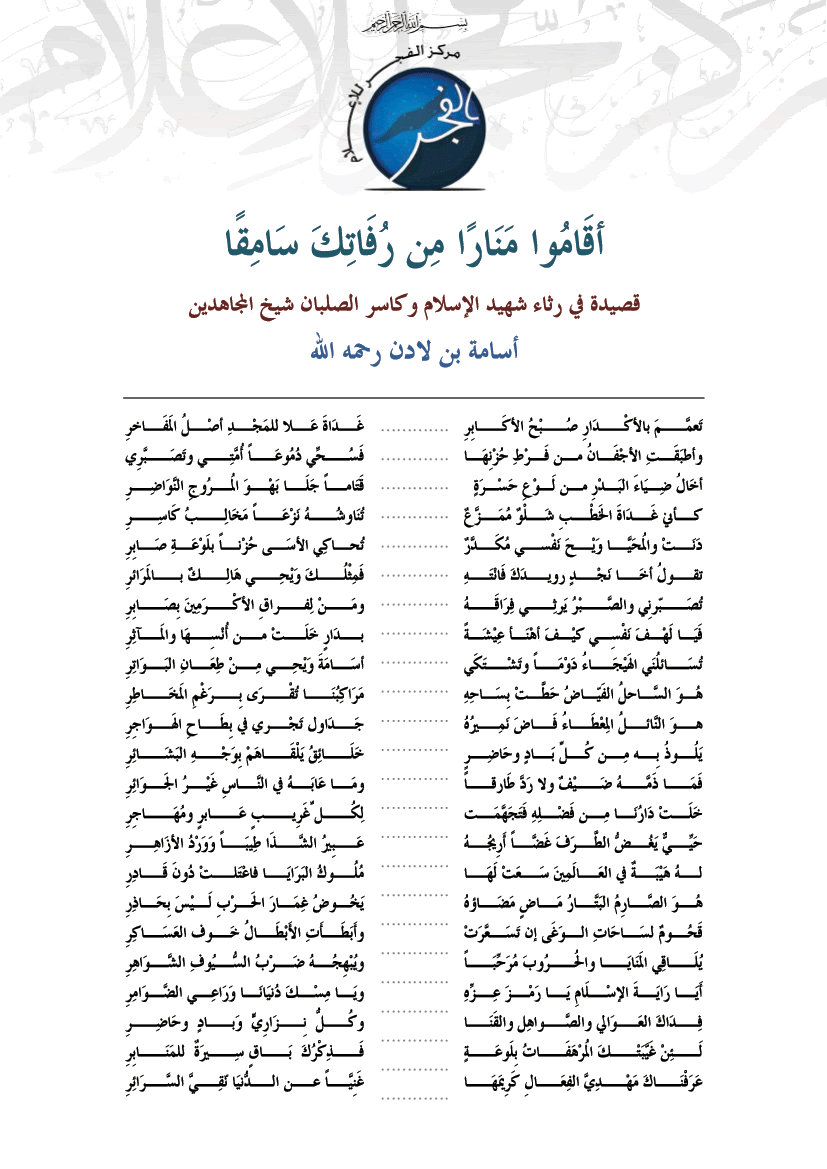 قصيدة في رثاء شهيد الإسلام أسامة بن لادن كتبها عبد الله العدم صاحب الصقر Ami Du Falcon